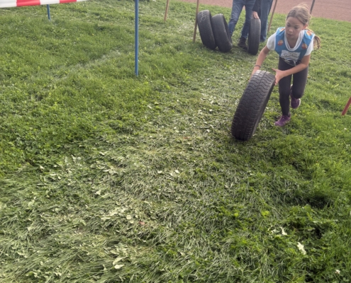 Auch in diesem Jahr mussten die Athletinnen und Athleten auf der Strecke wieder einige Hindernisse absolvieren. Hierzu zählten die Dartscheibe, der Reifenlauf, eine Rückwärtspassage, das Reifen rollen und das Tennisball werfen.