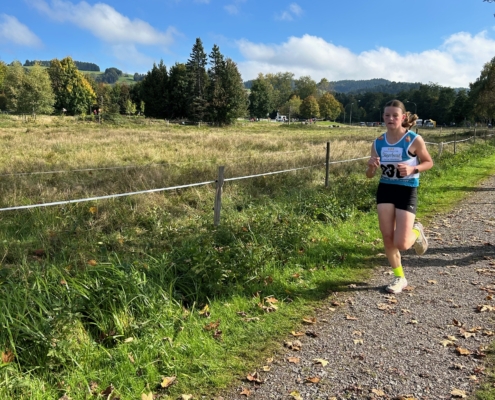 Ebenfalls über 2 km ging Pauline Nordt auf die Runde und durfte sich auch über einen Podestplatz freuen. Sie sicherte sich in der Altersklasse U11 den dritten Platz.