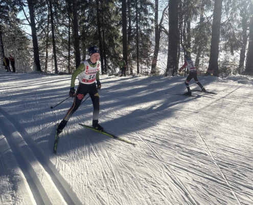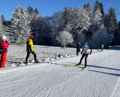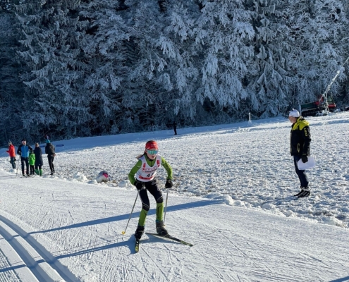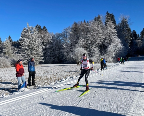 Zweimal die 1,2 km Runde in der Skating Technik liefen die Klassen U12 und U13. Über die insgesamt 2,4 km lief Finja Hock ein starkes Rennen und wurde 3. in der Altersklasse U12 weiblich.