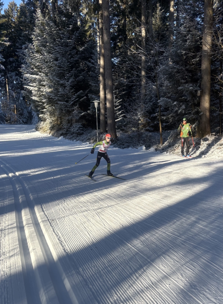 Zweimal die 1,2 km Runde in der Skating Technik liefen die Klassen U12 und U13. Über die insgesamt 2,4 km lief Finja Hock ein starkes Rennen und wurde 3. in der Altersklasse U12 weiblich.